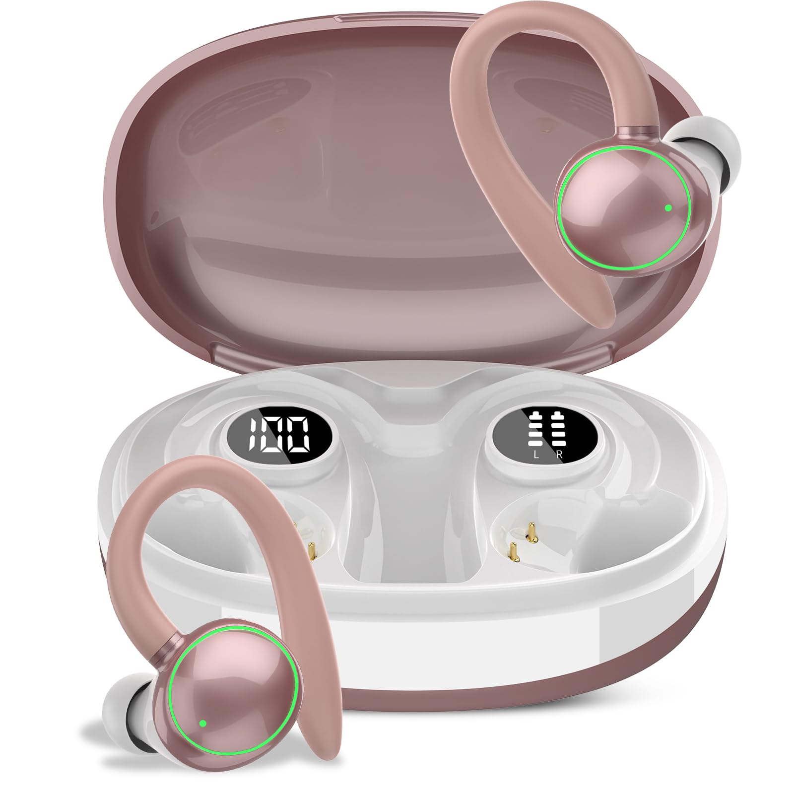 Wireless Earbuds, Bluetooth 5.4 Headphones Sport, Over Ear Buds With ENC Noise Cancelling Mic, 48H, Wireless Earphone With Earhooks, Stereo Deep Bass, IP7 Waterproof for Workout Running, Rose Gold (No Longer Available) | Elite Deals
